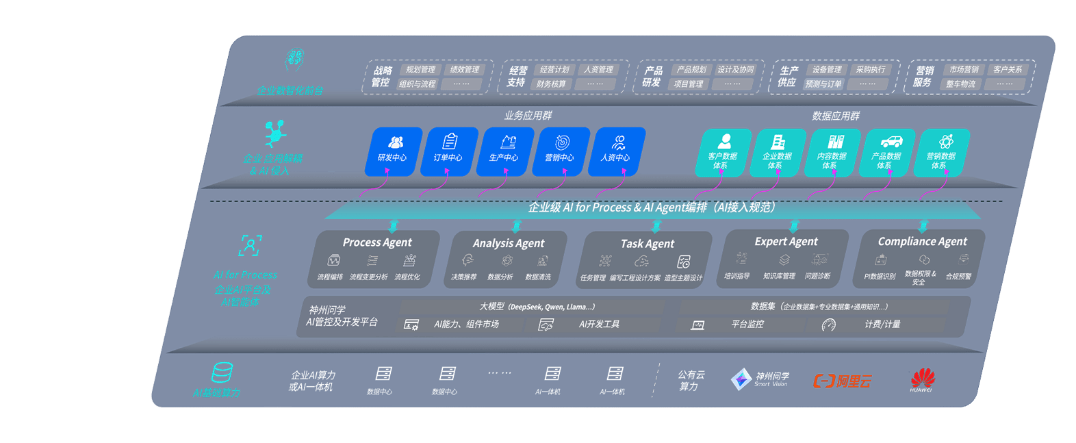 端到端的一站式AI工作空间深度融合了从企业战略规划到日常经营的全流程业务板块,,,,定向解决车企内部领域多、、、部门多、、、链条长、、场景碎片化等难题,,,支持车企快速构建以AI为核心的生产力写作体系,,实现任务执行与AI能力的无缝集成与交互